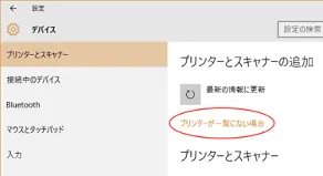 - スタートメニュー等から「設定」を開き,「Bluetoothとデバイス > プリンターとスキャナー」を開いてください.
