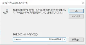 「フロッピー ディスクからインストール」画面に戻ったら「製造元のファイルのコピー元(C):」が,「手順1:プリンタドライバのダウンロード」で解凍したプリンタドライバのフォルダを指しているか確認し,「OK」ボタンを押下してください.
