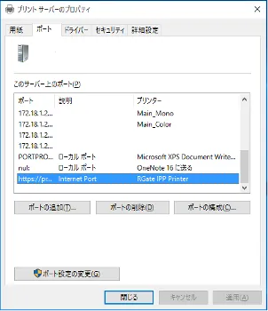 - 「プリントサーバーのプロパティ」画面が開きますので,「ポート」タブを開いてください.