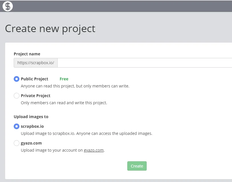 - Project Publication Settings: You can choose between “Public Project” and “Private Project”. Each project has the following features.