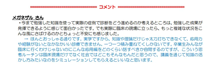 学生のコメント: この授業が良かった理由