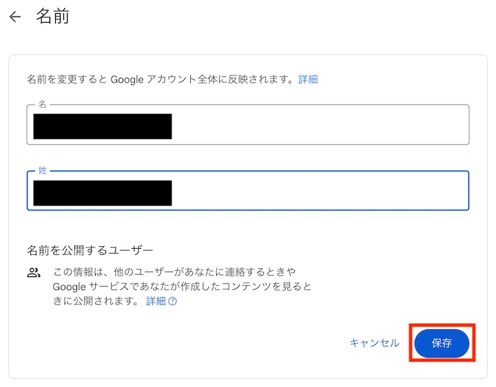 5. 名前(姓・名)を入力して,「保存」をクリックしてください.