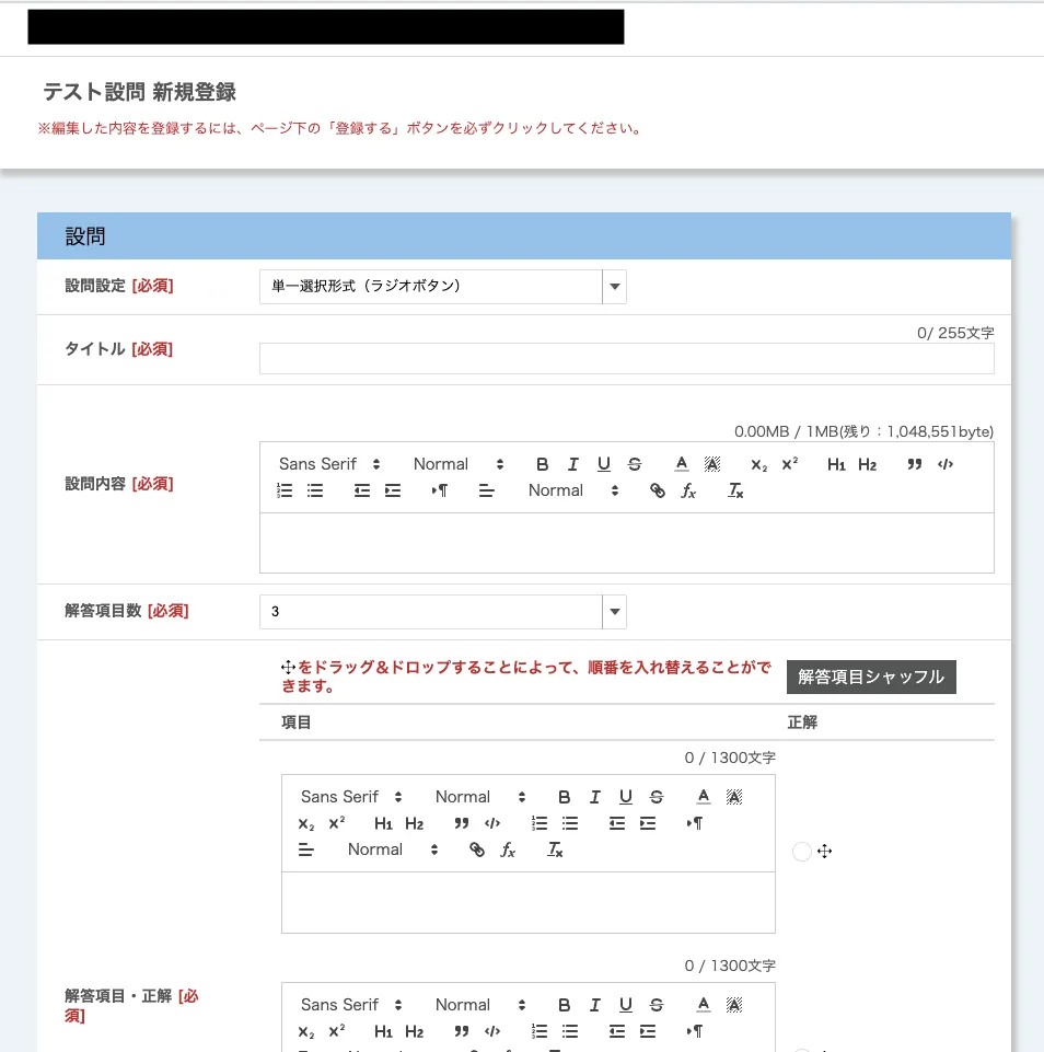 2. 続いて,設問の情報を入力してください(下図は,単一選択形式の場合のスクリーンショットです).